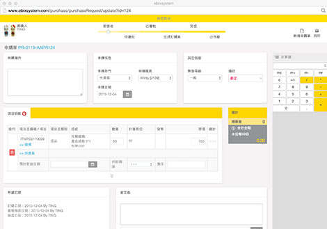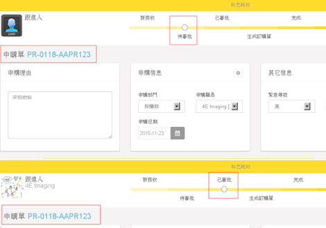 申購單中操作每一步流程都會即時更新狀態