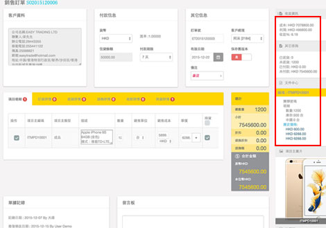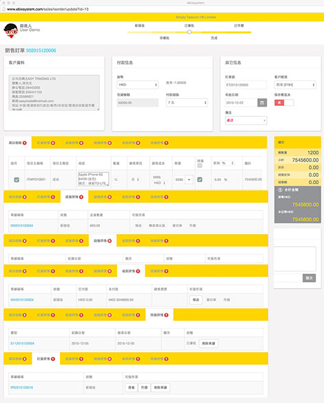 銷售訂單擁有跨部門的流程功能及狀態的實時更新,包括訂貨的狀態提示、送貨及收款狀況等等,使您可以更清晰了解訂單的狀況