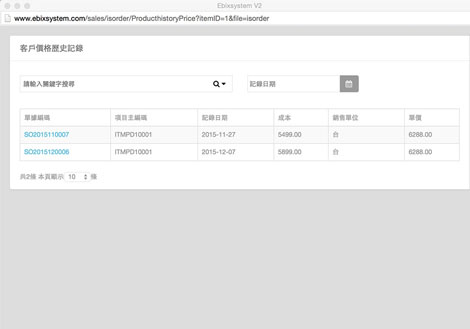在銷售訂單的每一單價內都有歷史價格的連接,只需點擊歷史價格,便可以選取以往的成交價格
