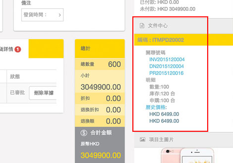 銷售訂單肩負文件控制中心的功能,您可透過銷售訂單檢視所有關於這訂單的關聯單據,包括報價單、送貨單、發票單、申購單、出庫單、銷售憑證、收款憑證等等。同時一張銷售單可支援多張發票單及其他關聯單據。